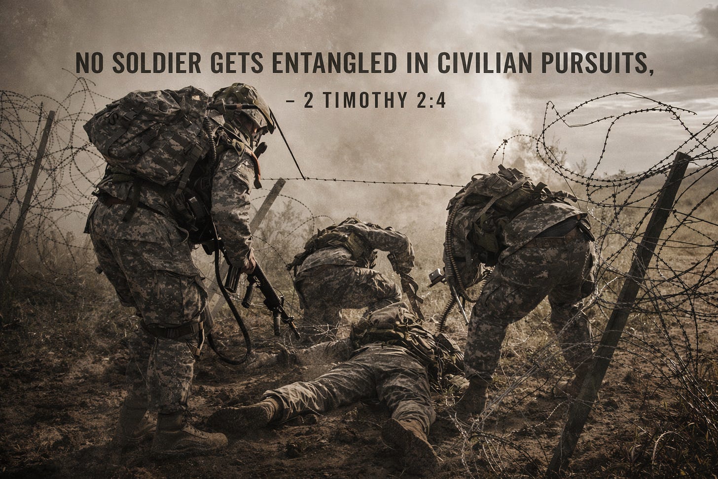 “No soldier gets entangled in civilian pursuits, since his aim is to please the one who enlisted him.” — 2 Timothy 2:4